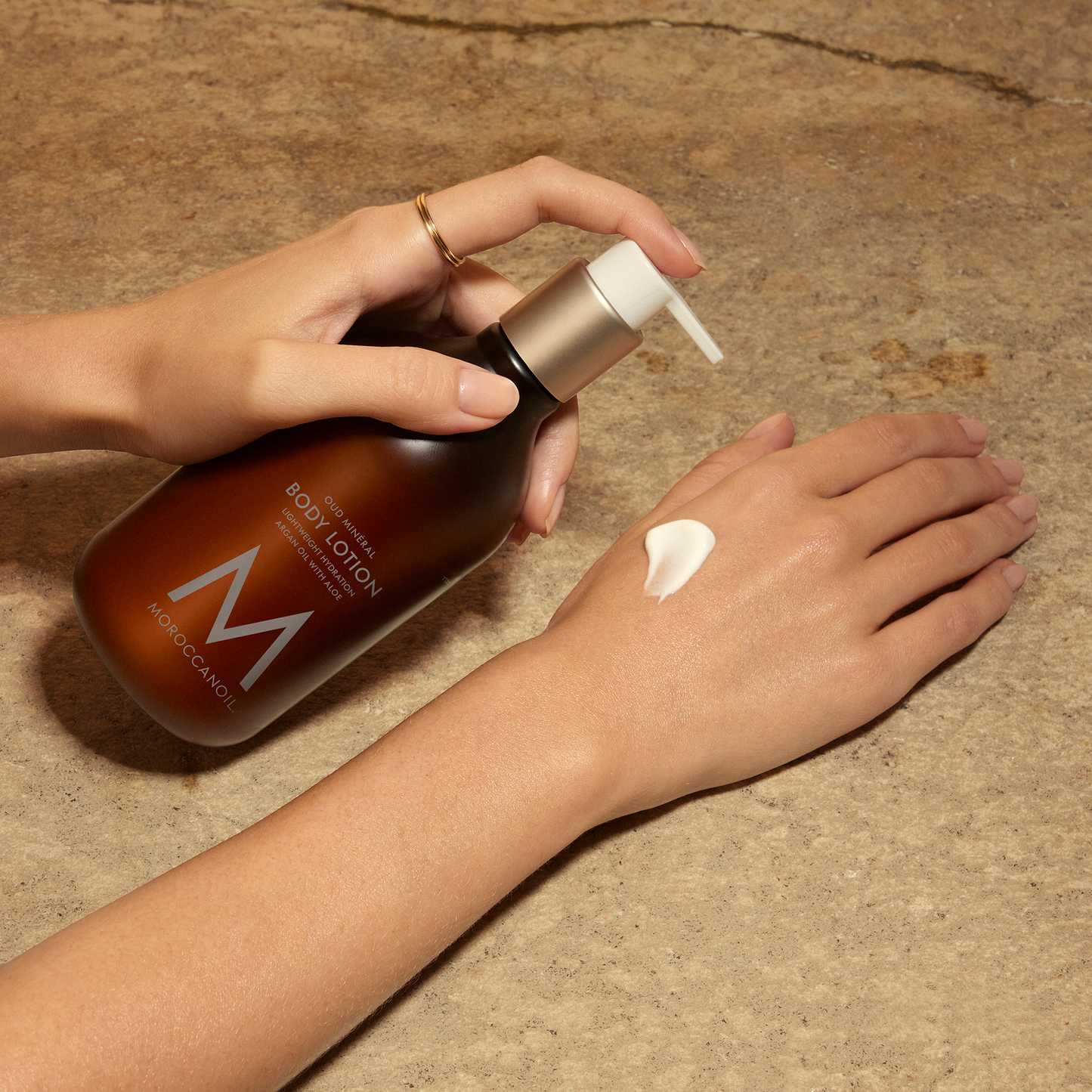 Moroccanoil Oud Minéral to ultralekki balsam, który natychmiast stapia się ze skórą, pozostawiając ją jedwabiście gładką, miękką i pełną naturalnego blasku. Jego zaawansowana formuła, bogata w składniki odżywcze, łączy regenerujące oleje - arganowy i z wiesiołka - z kojącym ekstraktem z liści aloesu, zapewniając skórze głębokie, długotrwałe nawilżenie oraz uczucie komfortu od rana do wieczora.