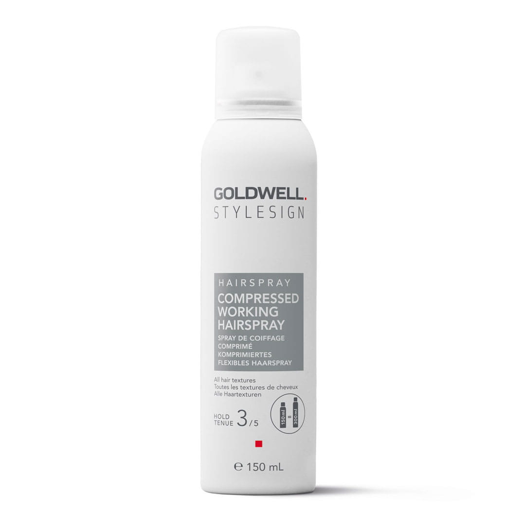 Goldwell StyleSign Compressed Working Hairspray to innowacyjny, skompresowany lakier do włosów zapewniający średni poziom utrwalenia i wyraźny połysk. Chroni fryzurę przed wilgocią oraz puszeniem nawet do 72 godzin, pomagając zachować jej nienaganny wygląd w każdych warunkach. Skoncentrowana formuła gwarantuje taką samą wydajność i liczbę aplikacji jak w tradycyjnym opakowaniu, mimo że produkt ma o połowę mniejszą pojemność. To praktyczne rozwiązanie do codziennego stosowania oraz idealny wybór w podróży.