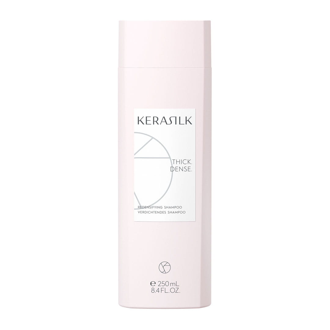 Kerasilk Essentials Redensifying Shampoo to delikatny preparat oczyszczający, stworzony specjalnie dla osób z przerzedzonymi i osłabionymi włosami. Dzięki zaawansowanej formule wzbogaconej o jedwab biomimetyczny, ektoinę i T-Flavanone, szampon wspomaga stymulację skóry głowy, nadając włosom pełniejszy, grubszy i zdrowszy wygląd od nasady. Jego 100% wegańska formuła stanowi doskonałą bazę dla odnowionej skóry głowy i gęstszych włosów.