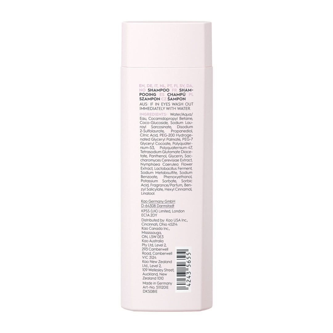 • neutralizuje twardą wodę, aby zapobiec gromadzeniu się minerałów i utrzymuje włosy w zrównoważonym, neutralnym stanie