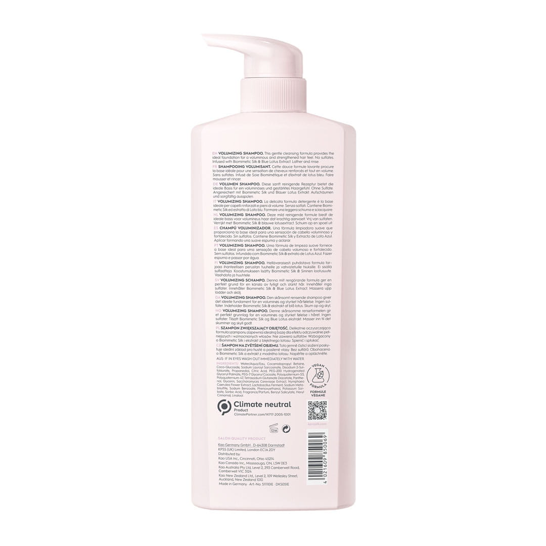 Kerasilk Essentials Volumizing Shampoo to wzmacniający, delikatnie oczyszczający szampon stworzony z myślą o włosach cienkich, słabych i pozbawionych objętości. Dzięki zaawansowanej formule wzbogaconej o jedwab biomimetyczny i ekstrakt z niebieskiego lotosu, szampon zwiększa naturalną objętość włosów bez ich obciążania, dodając lekkości i sprężystości. Jego 100% wegańska formuła stanowi idealną bazę do uzyskania efektu pełniejszych i mocniejszych włosów.