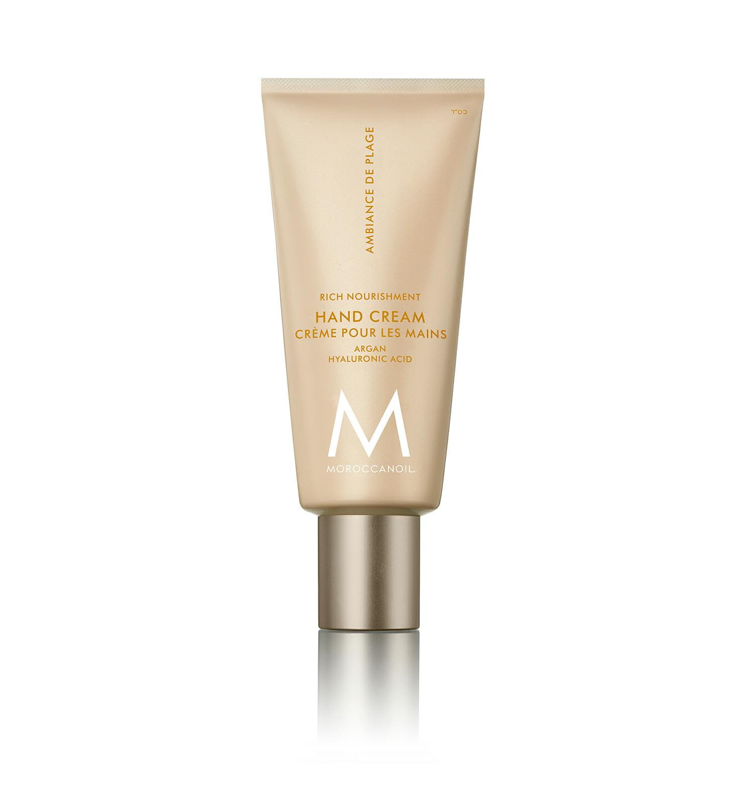 Twoje dłonie mówią o Tobie więcej, niż myślisz, dlatego warto zadbać o nie z wyjątkową troską. Krem do rąk Moroccanoil Body Ambiance de Plage z olejem arganowym, kwasem hialuronowym i masłem shea intensywnie nawilża i regeneruje skórę oraz wzmacnia paznokcie. Jego bogata, a jednocześnie szybko wchłaniająca się formuła oraz relaksujący zapach gardenii z nutą egzotycznego kokosa sprawią, że codzienna pielęgnacja stanie się czystą przyjemnością.