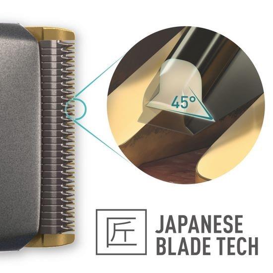 Bezprzewodowa profesjonalna maszynka do strzyżenia włosów Panasonic została stworzona z myślą o precyzyjnym cieniowaniu włosów już od 0,3 mm od skóry. Ostrza łączą tradycyjne japońskie rzemiosło z innowacyjną technologią Panasonic, gwarantując wyjątkową ostrość i trwałość, a powłoka diamentopodobna DLC 2.0 zapewnia dwukrotnie większą wytrzymałość niż stal nierdzewna. Ostrze o kącie 45° umożliwia gładkie i dokładne cięcie, a silnik liniowy utrzymuje stałą moc aż do wyczerpania baterii. Ergonomiczna konstrukcja i dołączone nasadki pozwalają na wszechstronną stylizację fryzur.