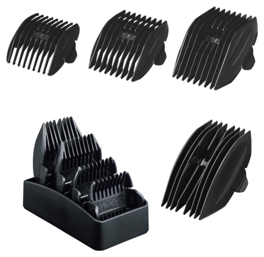 - dołączone nasadki grzebieniowe pozwalają na różnorodne długości strzyżenia.