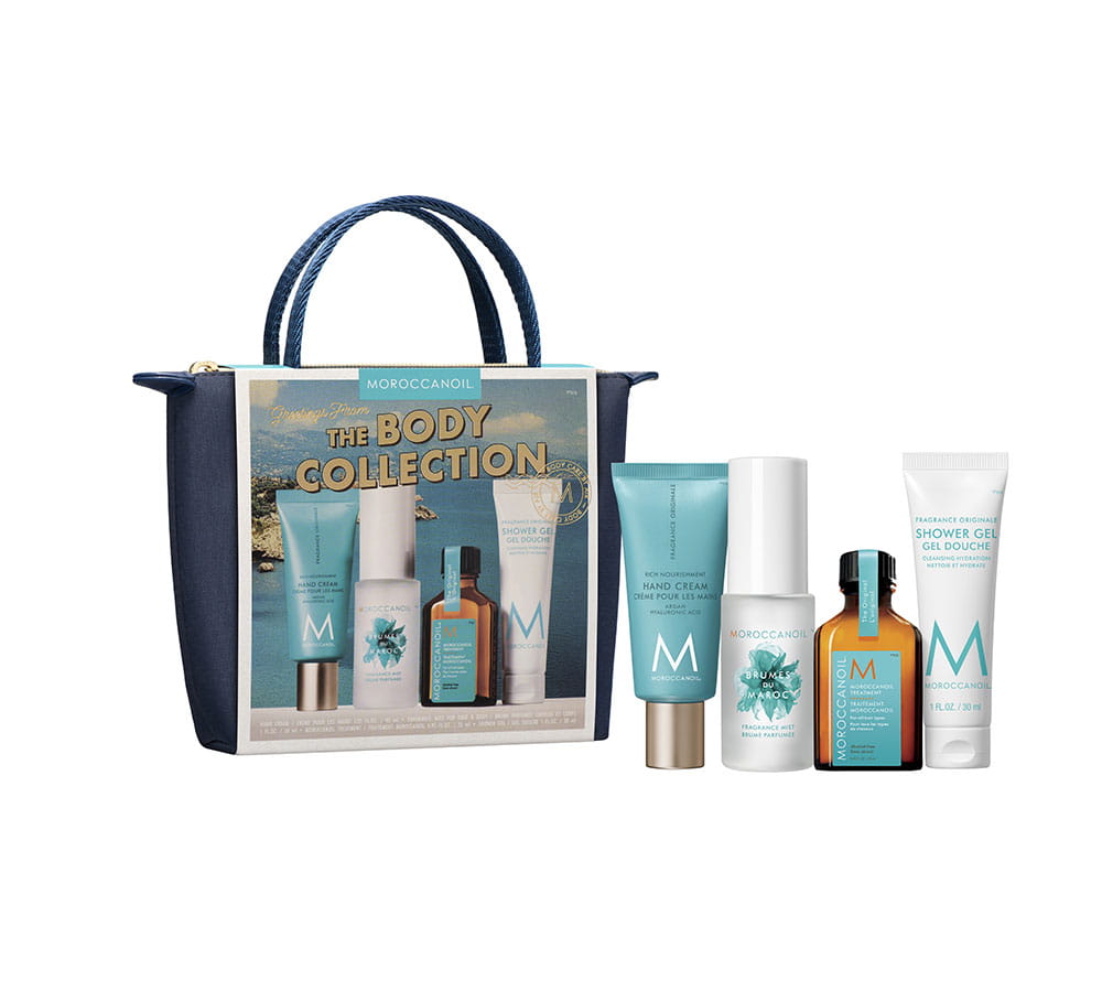 Limitowany zestaw zawierający 3 popularne produkty w wersji podróżnej do pielęgnacji ciała oraz kultową Kurację Moroccanoil – wszystkie wzbogacone bogatym w przeciwutleniacze olejkiem arganowym i wyróżniające się charakterystycznym zapachem Moroccanoil.